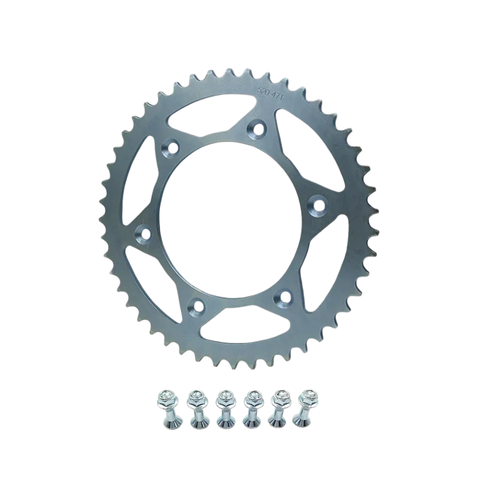 Dieser Hinterradkranz wurde speziell entwickelt, um Robustheit und Effizienz auf Ihren Fahrten oder Motocross-Sitzungen zu bieten. Er garantiert eine reibungslose und langlebige Übertragung und sorgt gleichzeitig für eine einfache und schnelle Installation. Eine ideale Wahl, um die Leistung und Zuverlässigkeit Ihres Motorrads zu verbessern.