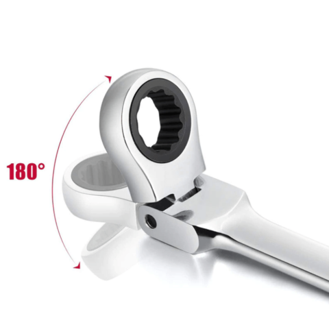 Ce set de clés à cliquet réglables permet d’atteindre facilement les espaces restreints grâce à leur tête pivotante à 180°. Conçues pour offrir un confort optimal et une grande efficacité, elles s’adaptent à tous vos besoins en mécanique et bricolage.