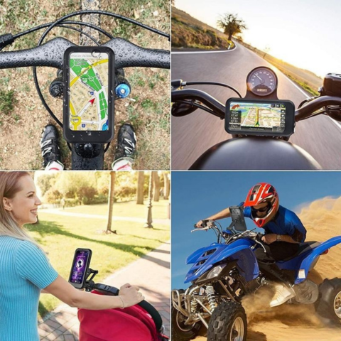 התמיכה הזו מגינה ביעילות על הטלפון שלכם מפני גשם תוך כדי טעינה מהירה במהלך הנסיעות שלכם. קל להתקנה על הכידון, היא מציעה אחיזה יציבה וגישה ישירה למסך.