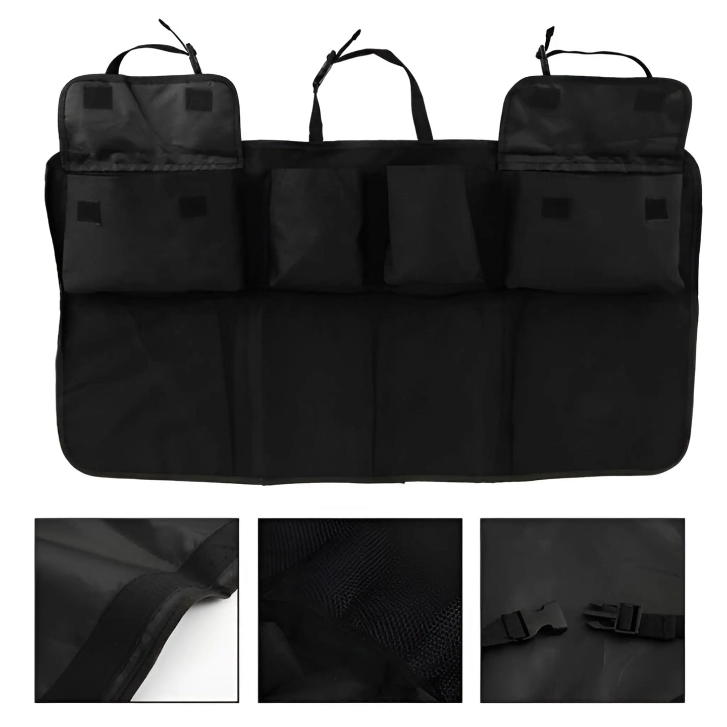 Denne bilseteorganisatoren tilbyr en praktisk løsning for å oppbevare eiendelene dine under reise. Den har flere lommer for å lagre forskjellige gjenstander. Enkel å installere, den passer de fleste kjøretøy.